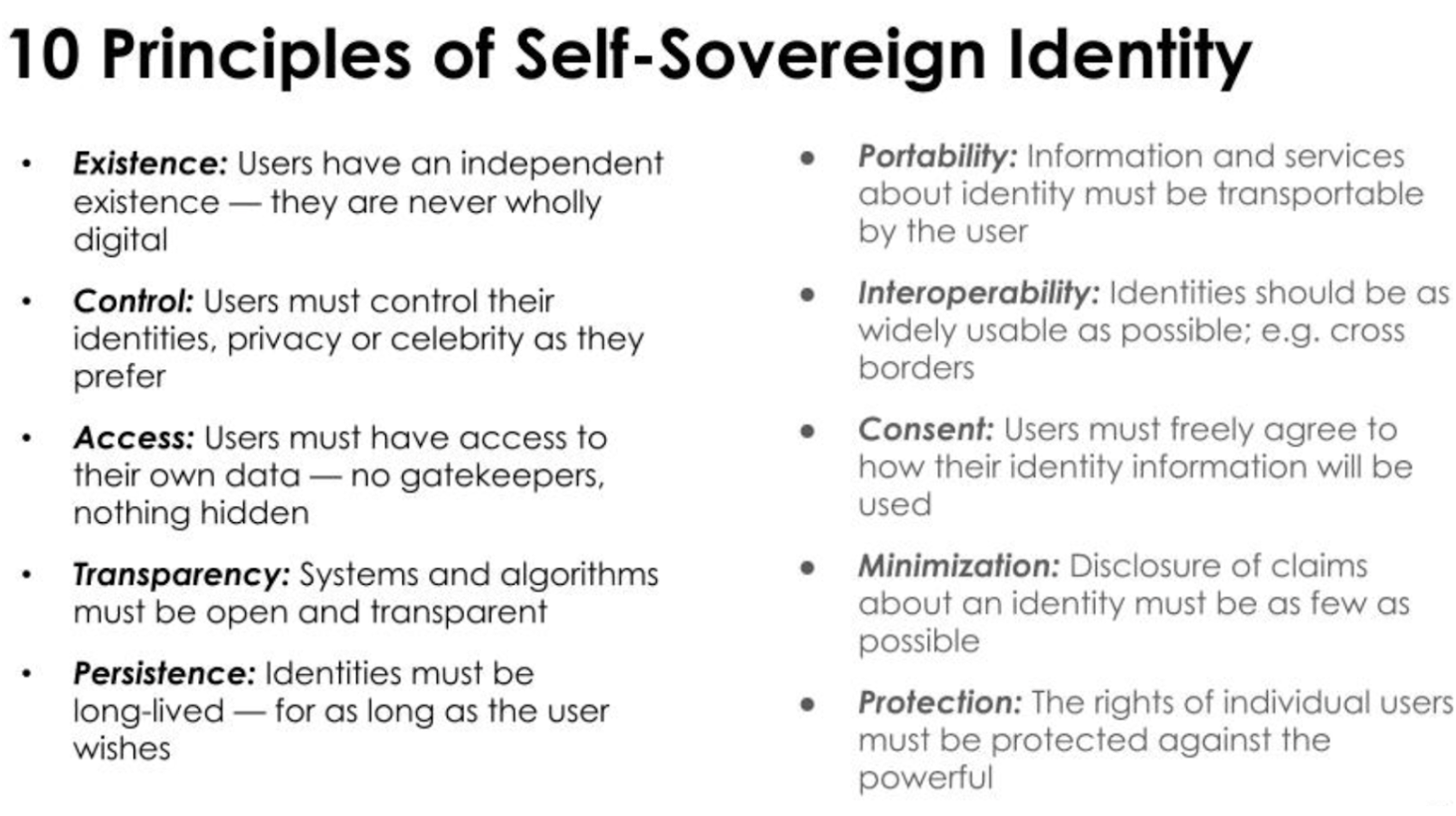 Principles of self-sovereign identity - see original article (https://bit.ly/_principles) & 5 years later (https://bit.ly/_principlesII)