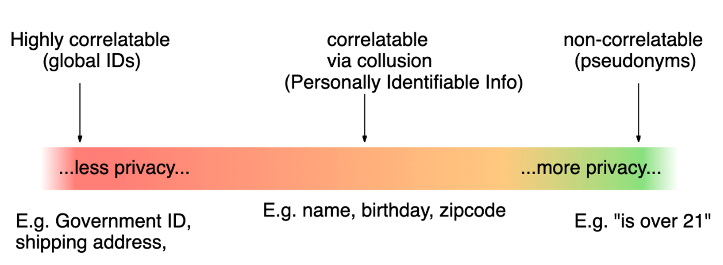 Privacy spectrum ranging from fully identified to pseudonymous | https://bit.ly/w3_privacy_spectrum