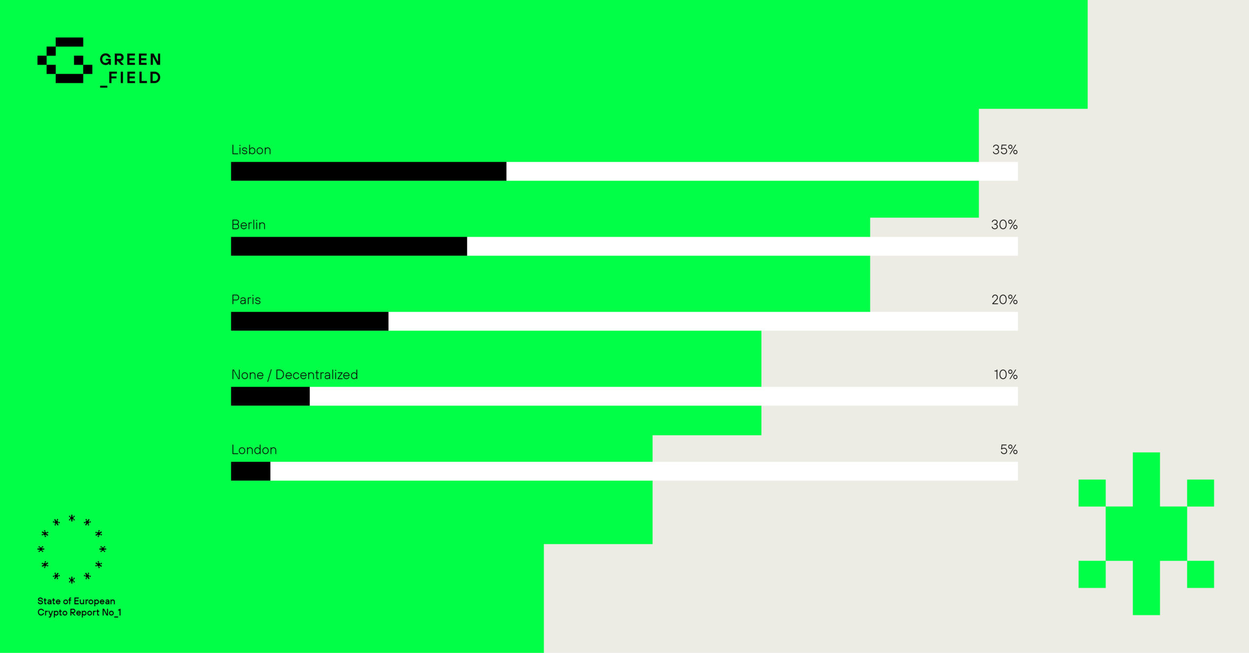 The founders of protocols and companies with a deep European footprint regard Lisbon as the world’s most important crypto hub, followed by New York City and Berlin. Paris (in 7th place) is the third European metropolis in the top ten.