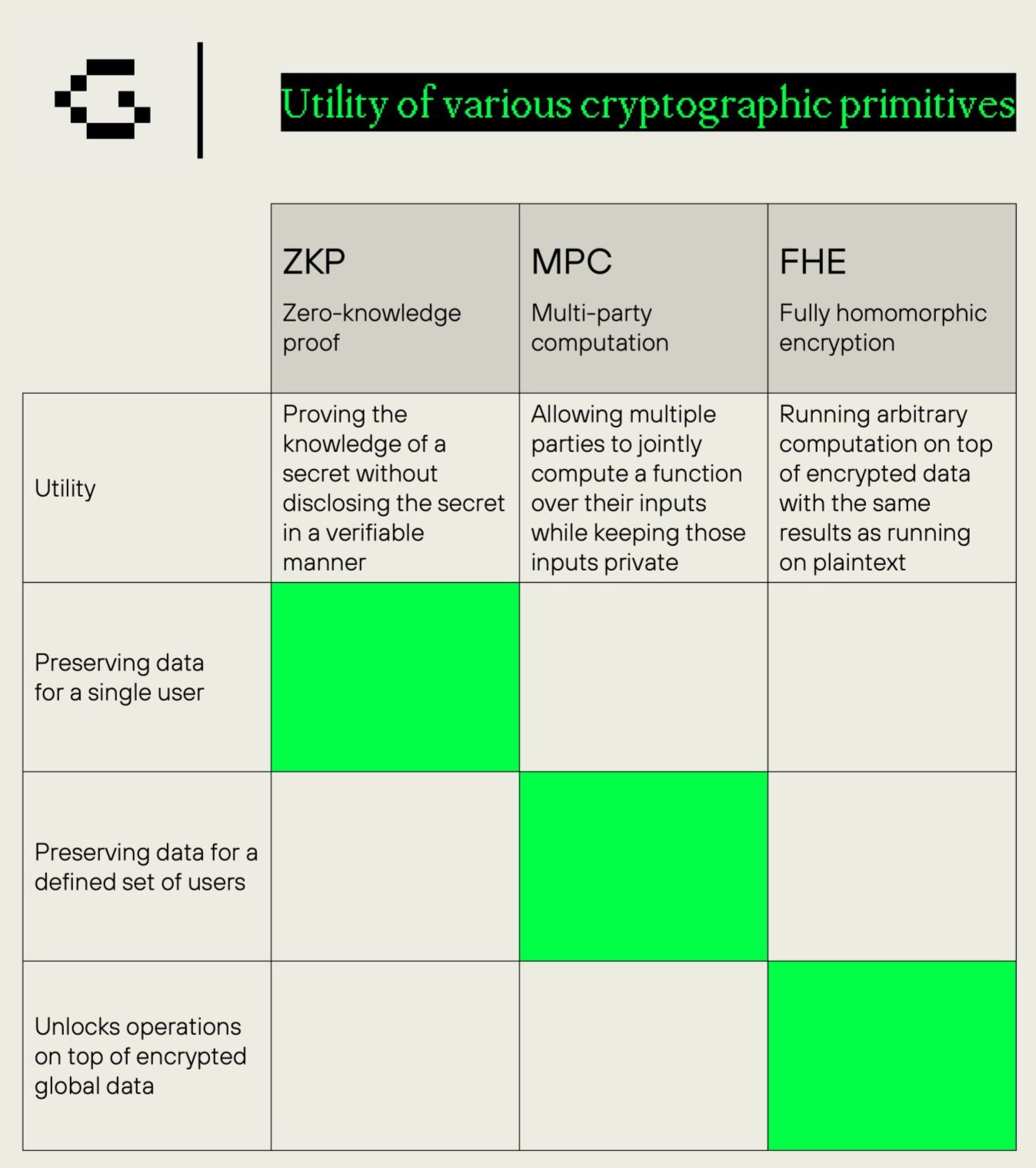 Privacy has always been a critical area to resolve and yet we can’t claim a clear win. The technical problem is real. However, the industry is making it even more difficult by oftentimes lumping together different solutions. Our latest research effort attempts to break down the differentiating attributes of the widely used primitives in Confidential Compute: ZKP, MPC and FHE. We also expand into how said cryptographic primitives are implemented on the system and dapp levels. By clearing up misconceptions, a more straightforward path to solutions could open up.