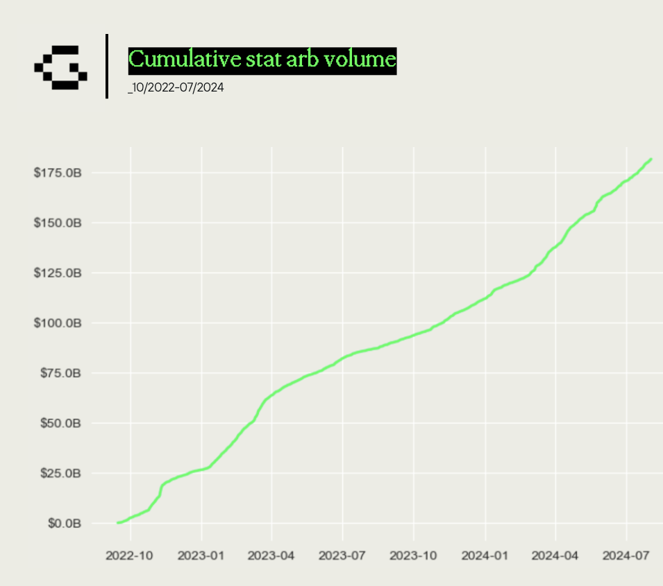 $175B+ result from statistical arbitrage (stat arb) transactions. It’s one of the main reasons for inefficiencies in crypto trading. In our recent in-depth onchain data-driven research, we explore stat arb on Ethereum and how it relates to and impacts block building via mev-boost. We also analyze the scope of the stat arb market and which parties win and dominate stat arb opportunities. Various protocols within our portfolio and network supported this research with insights and reviews (e.g., Titanbuilder, Liquorice, Warlock).