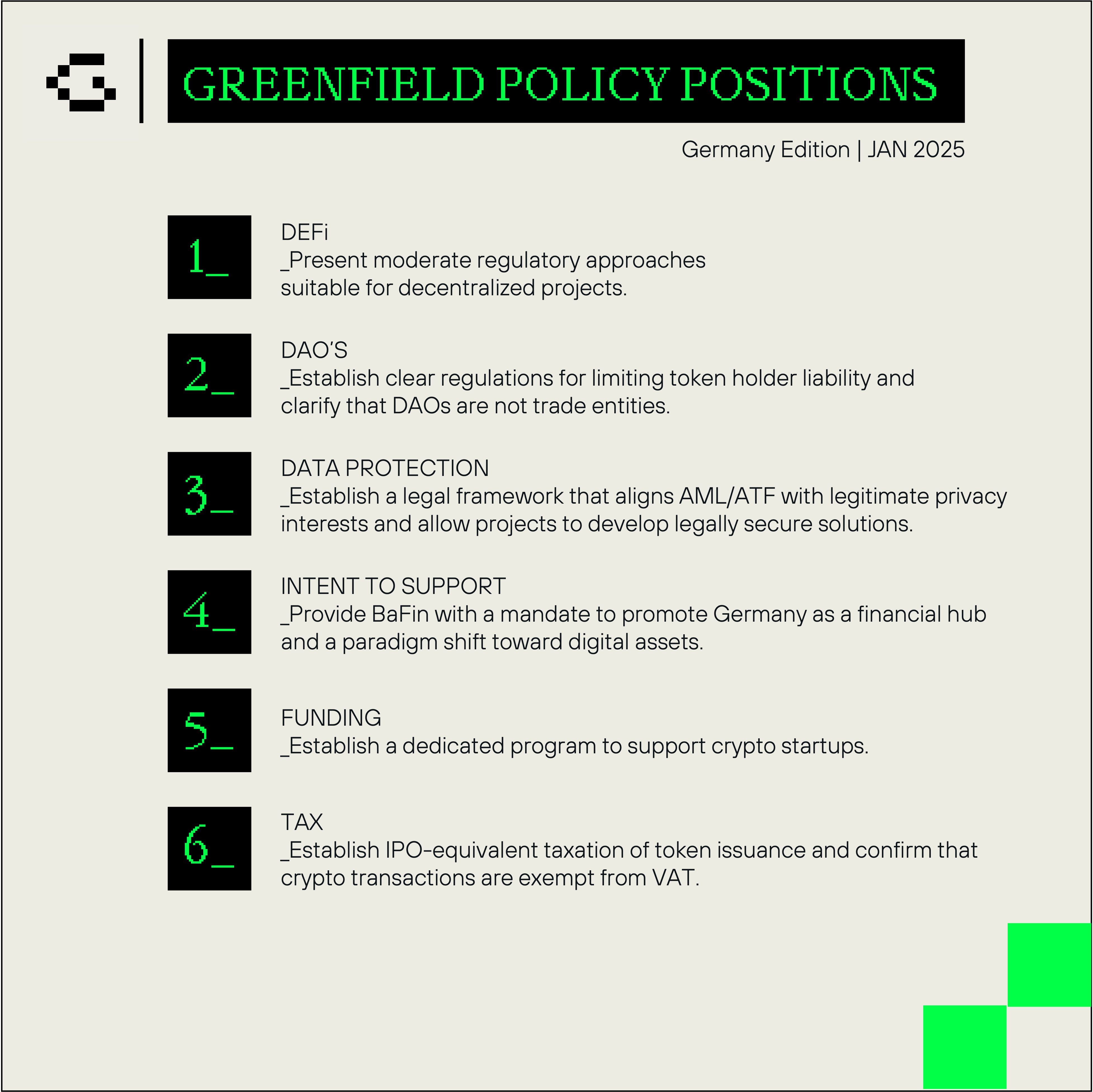 On 23 February, Germany will elect a new parliament. The election comes in a year when Germany and Europe need to set their decisive course as a leading hub for the crypto industry and blockchain as a key technology. Together with Areta, a Germany-based specialized investment bank for crypto and web3, we have compiled a position paper on the levers for innovation-friendly conditions and regulatory clarity for entrepreneurs, users and investors.